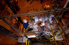 圖為國家能源技術科學家們正在查看運行中的傳感器。相關過程可令燃燒過程中產生的有害物質降到最少。